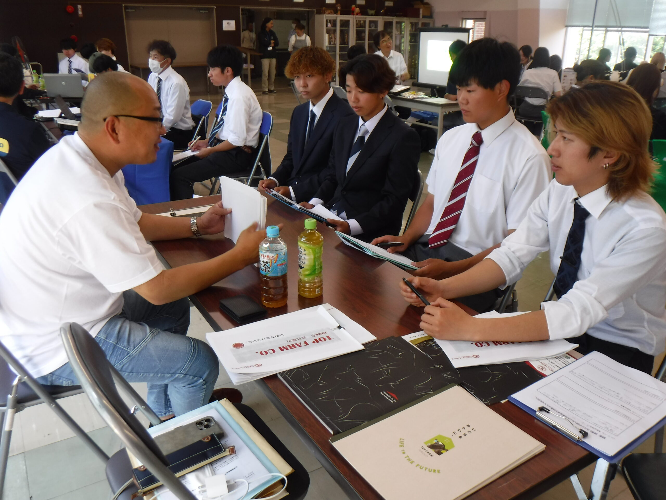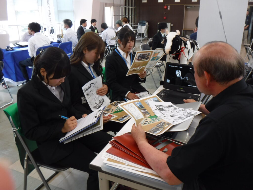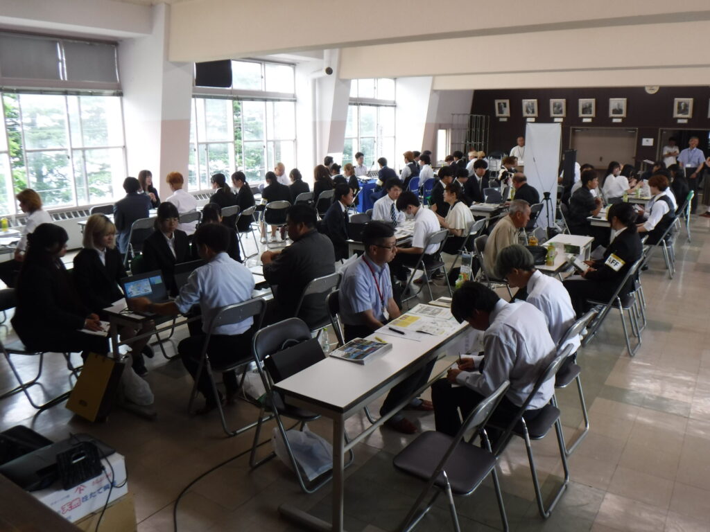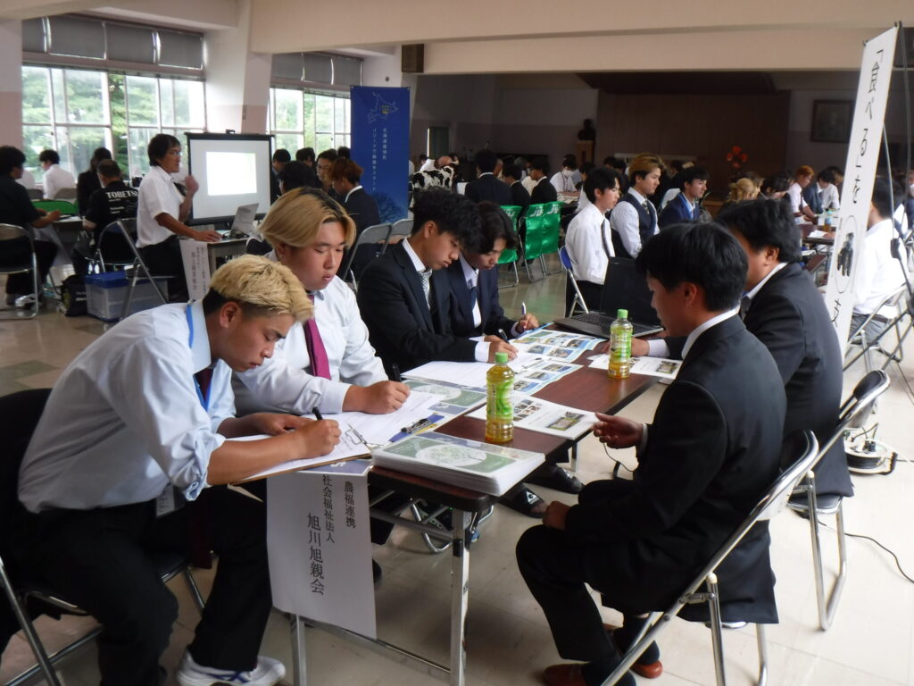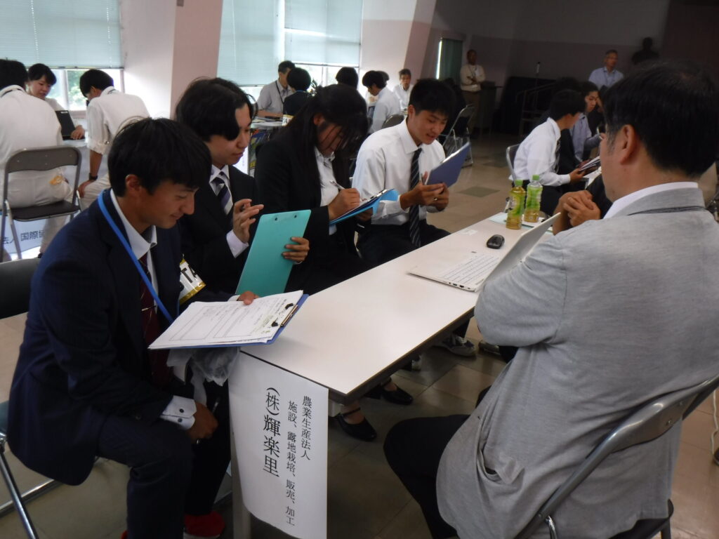農業のしごと相談会とは、農業系法人・企業や農家、牧場の方々にそれぞれブースをご担当いただき、仕事内容の説明ややりがい、待遇、専門的な内容まで、現場の実際の声を聞くことができる進路に関する学校行事です。