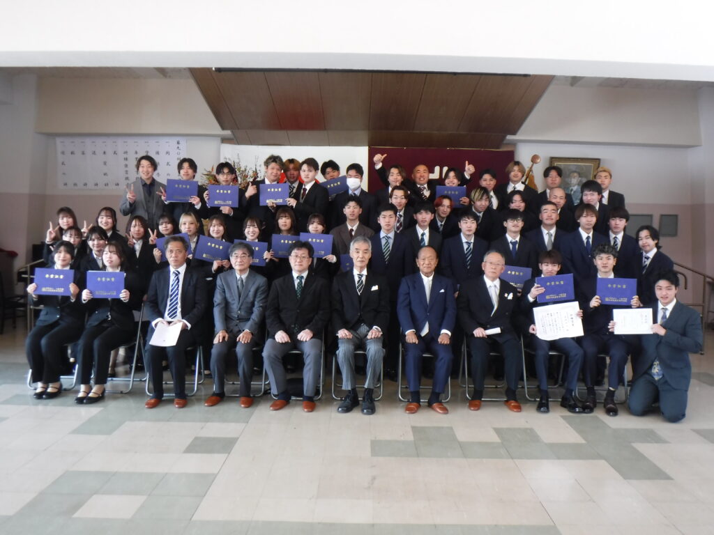 2名に学生が努力を生涯つづけて研練してほしいとの願いを込め表彰されました。
