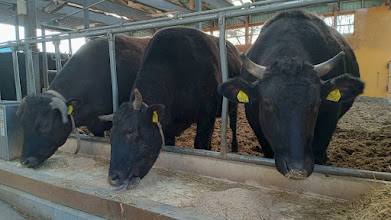 今回も3頭共、A5評価を受けました。BMSは、9(種牛、鈴音)10(諒太郎)、12(美津輝重)でした。 今回は29カ月出荷です。 資質系の美津照重は前回に続き、高いBMSでした。体積系の2頭(鈴音、諒太郎)ですが、体積系で高い評価を受けており、BMS12の美津照重の枝肉重量が495㎏に対し、鈴音は枝肉重量が633㎏と実に138㎏もの差をつけています。(写真が鈴音の断面になります。) もちろん、鈴音のほうが価値が上がります。素牛評価が実際に見ることができる一貫肥育は、本校の学生にも指導する教材としても勉強になります。