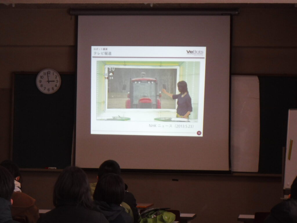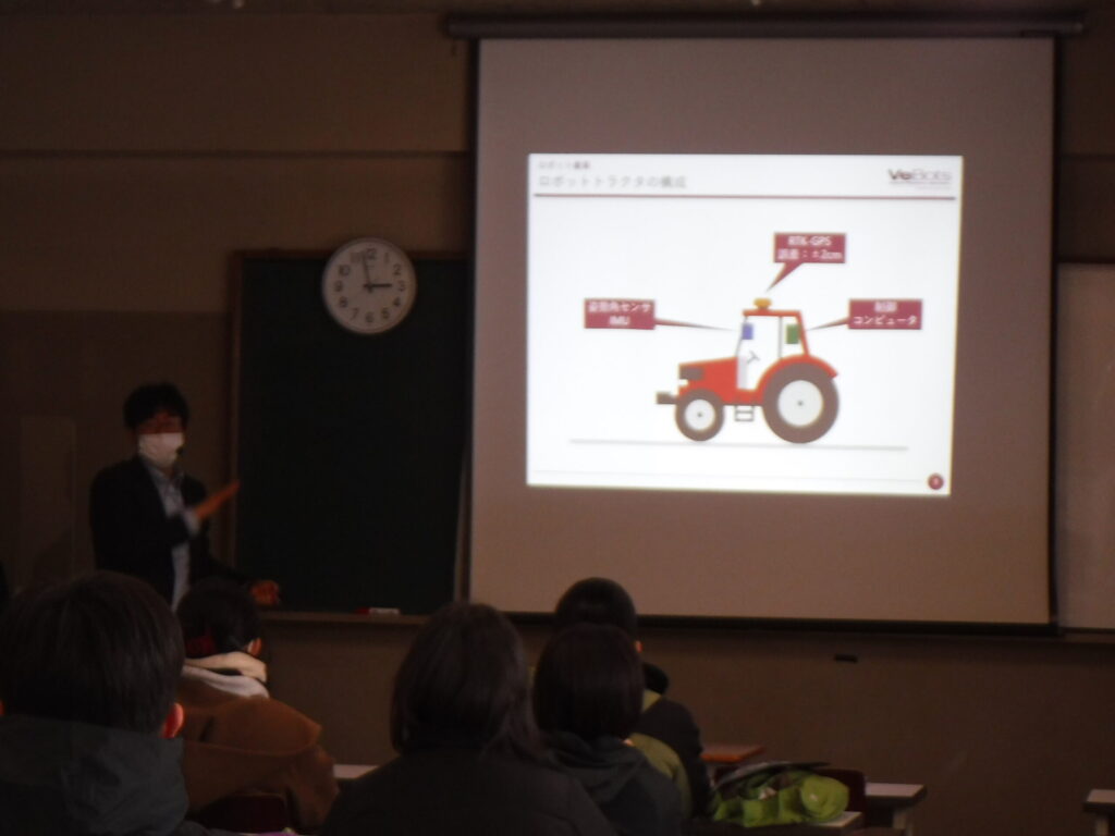 1月20日 14:40に本校の冬期講義で、『農業機械整備講師 石川 裕貴 主任』と『北海道大学大学院農学研究員 ビークルロボティックス研究室 岡本 博史 様』の協力の中、農作業の無人化・若い人が選びたくなる日本の農業について話し合いました。他にも農林水産省の方も視察に来ており、より情報の共有をしていき、技術の向上を図っていきたいと思います。